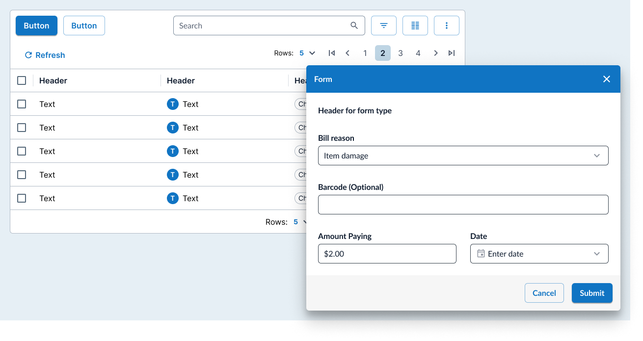 Generally speaking, we wanted to create a “workflow” pattern so the main components were a data grid and a dialog form.